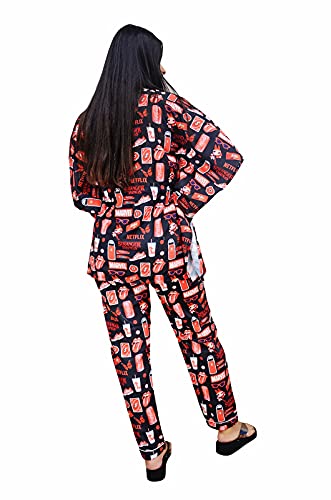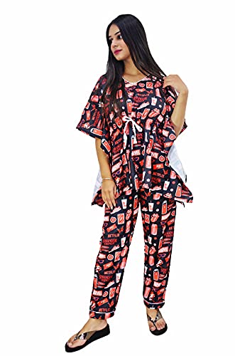 1.Care Instructions: Hand Wash Only 2.Cute, trendy and vibrant Kaftan and Pyjama Set 2.Material:- Swiss Cotton 2.Two piece Nightwear: Printed Kaftan + Pyjama (pajama sets for women/ girls) 2.ASSURANCE & AUTHENTICITY: Quality and satisfaction are asured. There may be some delay in delivery because of the on going pandemic. All our products are dispatched after proper sanitisation. Our facilities are regularly sanitised. To be sure of authenticity, we recommend you to buy this product from "Motley by RiyaJain" brand only. 2.Super comfort fit and soft fabric for a good night sleep or a relaxed day wear. After getting tired or exhausted by having a restless day, The first thing which comes into our mind is to reach home and wear light weight clothes, soft, comfortable night outfits or night suits and lay on bed. So we as Motley have brought a proper formula for your sleep while introducing designer, calming, relaxing, soft, easy to wear night suits/night dress for girls, ladies, women. These are perfect night attire to wear and to go out for a night walk. Motley gives you latest, trendy, fashionable & contemporary day & night cotton printed suits which add four moon to your sleep. Night suits are just as important as what you wear during the office, night outs, or during those date nights. Theres nothing better than getting a proper night’s sleep. If you’re just stepping in the world of night suits and are not sure about how and where to get started we are here for you. A Fashionable and comfortable all over printed Night Suit set which can be added to your lounge wear collection from our store. This top and payjama can be worn by you during your work from home day or a relaxed night. The pyjama has pockets on both sides and elastic waistband with a drawstring. A must-have co-ord (coordinated) set for your wardrobe! This graphic printed coord set from our store is designed in soft swiss cotton fabric that is sure to give you that extra comfort you need when relaxing at home. And may we suggest a pajama party with your friends and family!