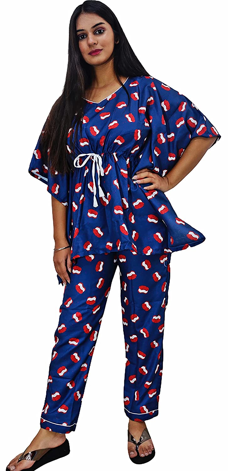 1.Care Instructions: Hand Wash Only 2.Cute, trendy and vibrant Kaftan and Pyjama Set 2.Material:- Swiss Cotton 2.Two piece Nightwear: Printed Kaftan + Pyjama (pajama sets for women/ girls) 2.ASSURANCE & AUTHENTICITY: Quality and satisfaction are asured. There may be some delay in delivery because of the on going pandemic. All our products are dispatched after proper sanitisation. Our facilities are regularly sanitised. To be sure of authenticity, we recommend you to buy this product from "Motley by RiyaJain" brand only. 2.Super comfort fit and soft fabric for a good night sleep or a relaxed day wear. After getting tired or exhausted by having a restless day, The first thing which comes into our mind is to reach home and wear light weight clothes, soft, comfortable night outfits or night suits and lay on bed. So we as Motley have brought a proper formula for your sleep while introducing designer, calming, relaxing, soft, easy to wear night suits/night dress for girls, ladies, women. These are perfect night attire to wear and to go out for a night walk. Motley gives you latest, trendy, fashionable & contemporary day & night cotton printed suits which add four moon to your sleep. Night suits are just as important as what you wear during the office, night outs, or during those date nights. Theres nothing better than getting a proper night’s sleep. If you’re just stepping in the world of night suits and are not sure about how and where to get started we are here for you. A Fashionable and comfortable all over printed Night Suit set which can be added to your lounge wear collection from our store. This top and payjama can be worn by you during your work from home day or a relaxed night. The pyjama has pockets on both sides and elastic waistband with a drawstring. A must-have co-ord (coordinated) set for your wardrobe! This graphic printed coord set from our store is designed in soft swiss cotton fabric that is sure to give you that extra comfort you need when relaxing at home. And may we suggest a pajama party with your friends and family!