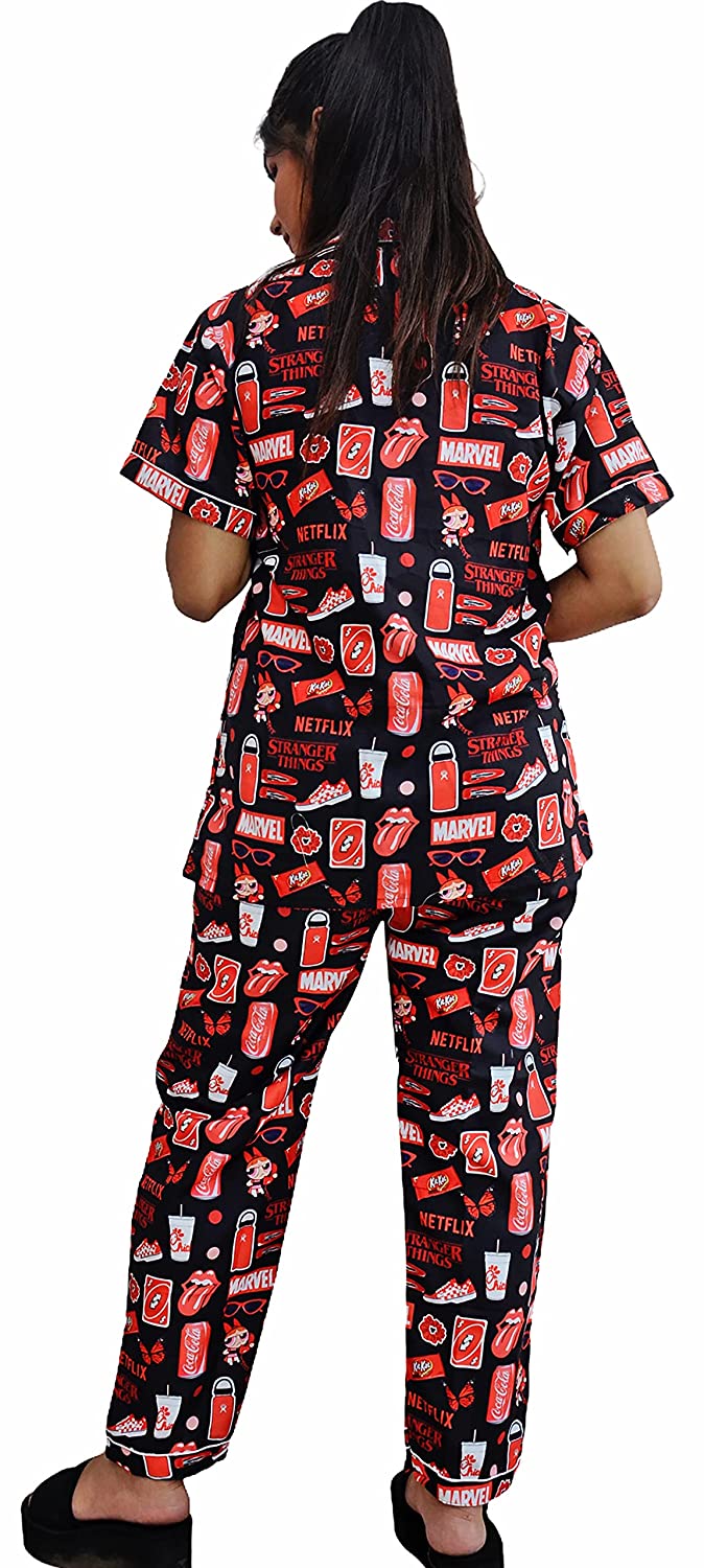 1.Care Instructions: Hand Wash Only 2.Cute, trendy and vibrant shirt and Pyjama Set 2.Material:- Swiss Cotton 2.Two piece Nightwear: Printed Shirt + Pyjama (pajama sets for women/ girls) 2.ASSURANCE & AUTHENTICITY: Quality and satisfaction are asured. There may be some delay in delivery because of the on going pandemic. All our products are dispatched after proper sanitisation. Our facilities are regularly sanitised. To be sure of authenticity, we recommend you to buy this product from "Motley by RiyaJain" brand only. 2.Super comfort fit and soft fabric for a good night sleep or a relaxed day wear. After getting tired or exhausted by having a restless day, The first thing which comes into our mind is to reach home and wear light weight clothes, soft, comfortable night outfits or night suits and lay on bed. So we as Motley have brought a proper formula for your sleep while introducing designer, calming, relaxing, soft, easy to wear night suits/night dress for girls, ladies, women. These are perfect night attire to wear and to go out for a night walk. Motley gives you latest, trendy, fashionable & contemporary day & night cotton printed suits which add four moon to your sleep. Night suits are just as important as what you wear during the office, night outs, or during those date nights. Theres nothing better than getting a proper night’s sleep. If you’re just stepping in the world of night suits and are not sure about how and where to get started we are here for you. A Fashionable and comfortable all over printed Night Suit set which can be added to your lounge wear collection from our store. This top and payjama can be worn by you during your work from home day or a relaxed night. The pyjama has pockets on both sides and elastic waistband with a drawstring. A must-have co-ord (coordinated) set for your wardrobe! This graphic printed coord set from our store is designed in soft swiss cotton fabric that is sure to give you that extra comfort you need when relaxing at home. And may we suggest a pajama party with your friends and family!