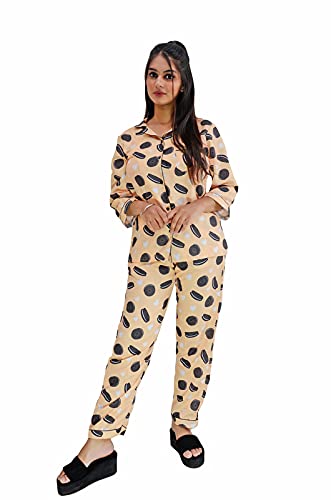 1.Care Instructions: Hand Wash Only 2.Cute, trendy and vibrant shirt and Pyjama Set 2.Material:- Swiss Cotton 2.Two piece Nightwear: Printed Shirt + Pyjama (pajama sets for women/ girls) 2.ASSURANCE & AUTHENTICITY: Quality and satisfaction are asured. There may be some delay in delivery because of the on going pandemic. All our products are dispatched after proper sanitisation. Our facilities are regularly sanitised. To be sure of authenticity, we recommend you to buy this product from "Motley by RiyaJain" brand only. 2.Super comfort fit and soft fabric for a good night sleep or a relaxed day wear. After getting tired or exhausted by having a restless day, The first thing which comes into our mind is to reach home and wear light weight clothes, soft, comfortable night outfits or night suits and lay on bed. So we as Motley have brought a proper formula for your sleep while introducing designer, calming, relaxing, soft, easy to wear night suits/night dress for girls, ladies, women. These are perfect night attire to wear and to go out for a night walk. Motley gives you latest, trendy, fashionable & contemporary day & night cotton printed suits which add four moon to your sleep. Night suits are just as important as what you wear during the office, night outs, or during those date nights. Theres nothing better than getting a proper night’s sleep. If you’re just stepping in the world of night suits and are not sure about how and where to get started we are here for you. A Fashionable and comfortable all over printed Night Suit set which can be added to your lounge wear collection from our store. This top and payjama can be worn by you during your work from home day or a relaxed night. The pyjama has pockets on both sides and elastic waistband with a drawstring. A must-have co-ord (coordinated) set for your wardrobe! This graphic printed coord set from our store is designed in soft swiss cotton fabric that is sure to give you that extra comfort you need when relaxing at home. And may we suggest a pajama party with your friends and family!