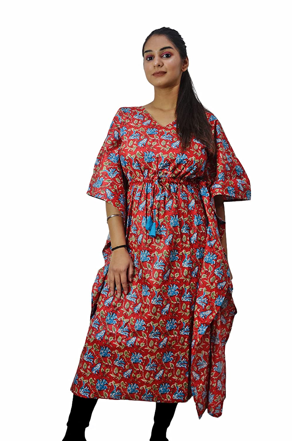 A Sanganeri printed Kaftan kurti which can be added to your lounge wear collection from our store. Beautifully crafted Kaaftan in v neck can worn by you during your work from home day, an outing with friends or a relaxed night.It is designed in soft pure cotton fabric that is sure to give you that extra comfort you need when relaxing at home. And may we suggest an outing with friends or family.