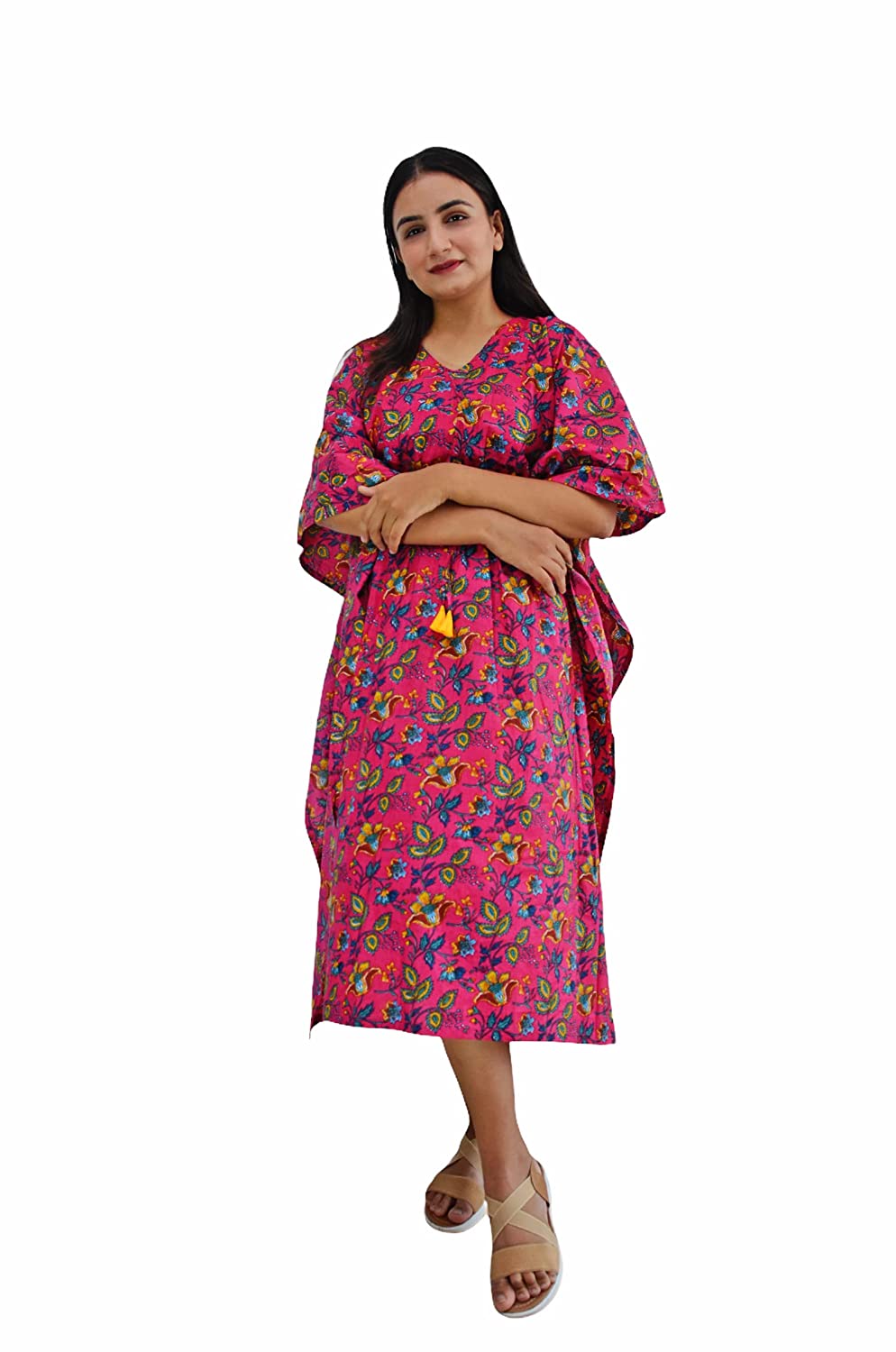1.Care Instructions: Hand Wash Only 2.Handcrafted, trendy and vibrant Peplum top and Pyjama Set 2.Material:- 100% Cotton 2.Printed Nightwear: Printed Kaftaan Kurti/ Dress 2.ASSURANCE & AUTHENTICITY: Quality and satisfaction are asured. There may be some delay in delivery because of the on going pandemic. All our products are dispatched after proper sanitisation. Our facilities are regularly sanitised. To be sure of authenticity, we recommend you to buy this product from "Motley by RiyaJain" brand only. 2.Super comfort fit and soft fabric for a good night sleep or a relaxed day wear. A Sanganeri printed Kaftan kurti which can be added to your lounge wear collection from our store. Beautifully crafted Kaaftan in v neck can worn by you during your work from home day, an outing with friends or a relaxed night.It is designed in soft pure cotton fabric that is sure to give you that extra comfort you need when relaxing at home. And may we suggest an outing with friends or family.