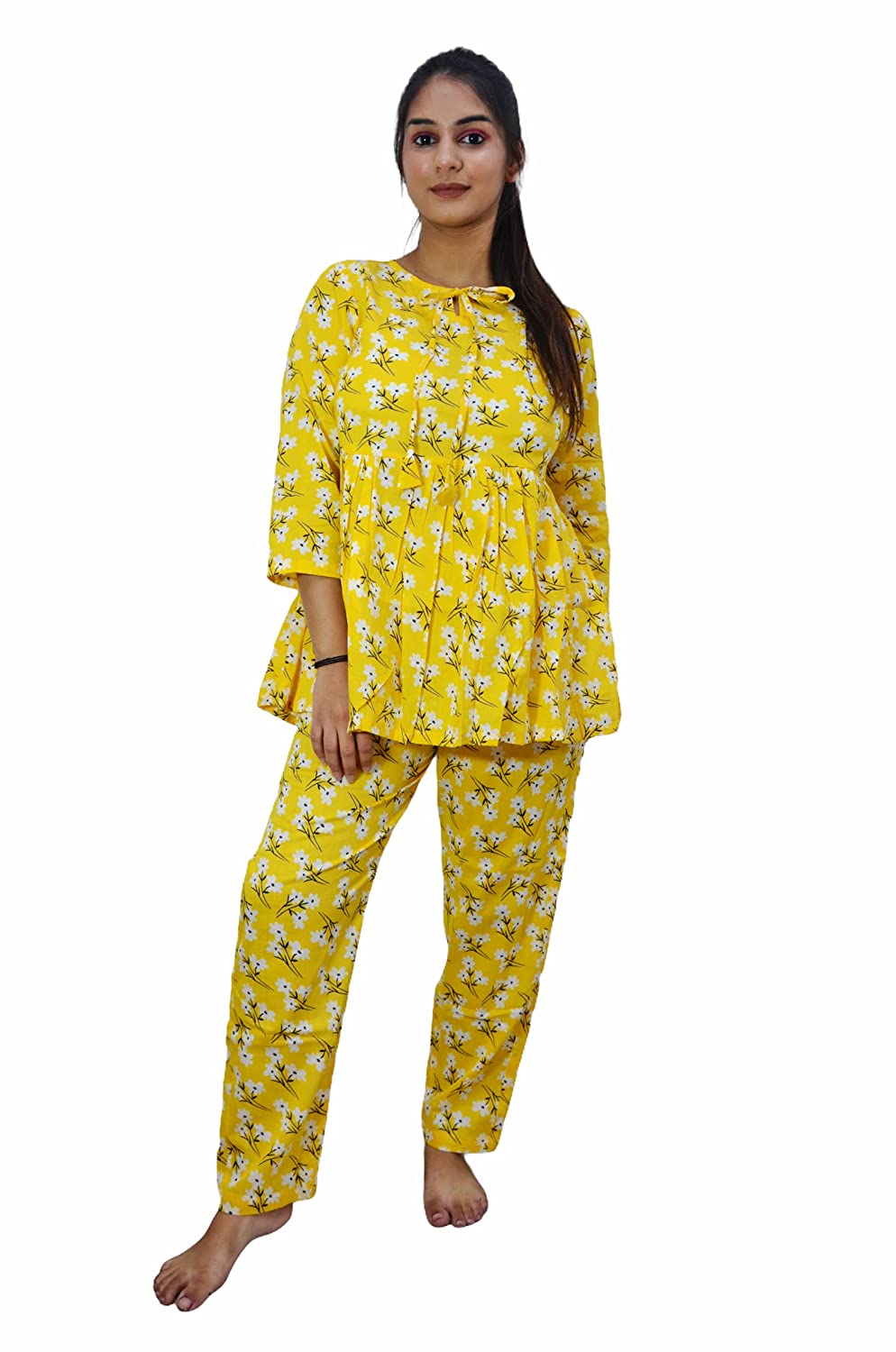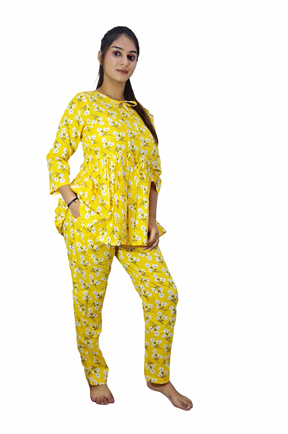 1.Care Instructions: Hand Wash Only 2.Handcrafted, trendy and vibrant Indigo Kaftan and Pyjama Set 2.Material:- 100% Cotton 2.Two piece Nightwear: Printed Kaftan + Pyjama (pajama sets for women/ girls) 2.ASSURANCE & AUTHENTICITY: Quality and satisfaction are asured. There may be some delay in delivery because of the on going pandemic. All our products are dispatched after proper sanitisation. Our facilities are regularly sanitised. To be sure of authenticity, we recommend you to buy this product from "Motley by RiyaJain" brand only. 2.Super comfort fit and soft fabric for a good night sleep or a relaxed day wear. A Sanganeri printed Peplum top with pyjamas Night Suit set which can be added to your lounge wear collection from our store. Beautifully crafted top with string round neck with matching printed pyjamas creates a set of product which can worn by you during your work from home day, an outing with friends or a relaxed night. The pyjama has pockets on both sides and elastic waistband with a drawstring. A must-have co-ord (coordinated) set for your wardrobe! This floral sanganeri screen printed coord set from our store is designed in soft pure cotton fabric that is sure to give you that extra comfort you need when relaxing at home. And may we suggest an outing with friends or family.