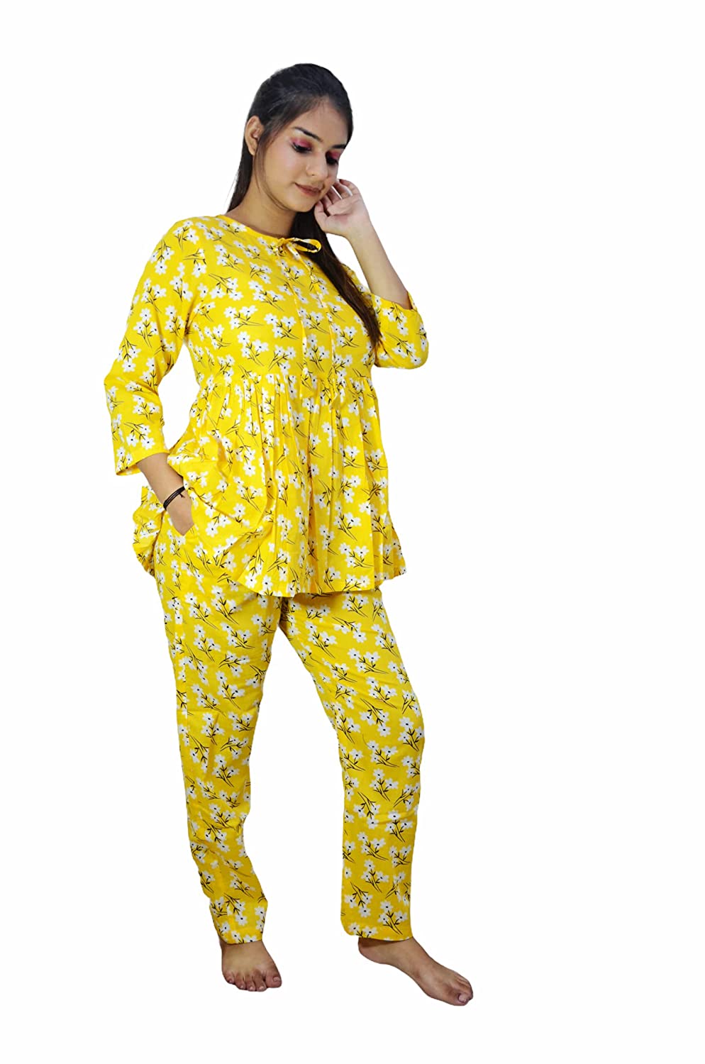 2.Two piece Nightwear: Printed Kaftan + Pyjama (pajama sets for women/ girls)