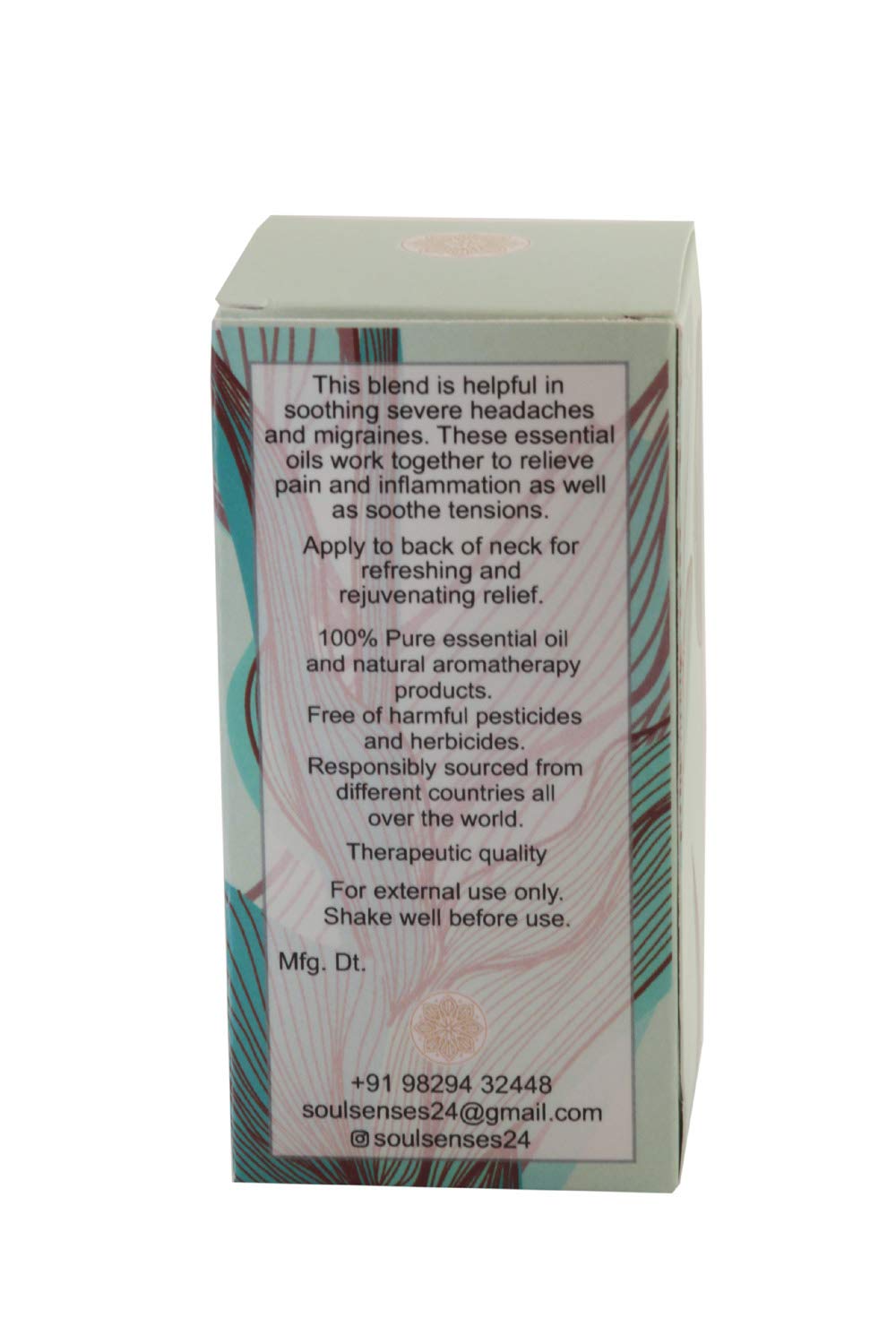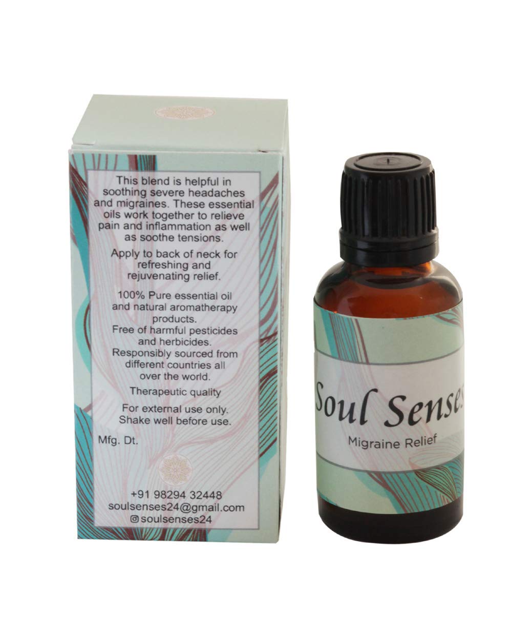 The Soul Senses Migraine Relief essential oil uses an all-natural formulation that is known to relieve pain and inflammation as well as soothe tension in severe headaches within minutes of its application. It is enriched with a blend of 100% pure essential oils. Scented with rich aroma, this oil harmonizes the senses and de-stresses the head. In fact, the scent alone can make you feel better in an instant. Migraine Relief is an aromatherapy formulation, a 6000-year-old holistic healing treatment that enhances both physical and emotional health. This blend is so helpful in soothing severe headaches and migraines. Relieve pain and inflammation. Soothe tension caused by stress. Just a few drops per use is enough. No chemicals.Therapeutic quality. Usfda certified organic ingredients. Apply few drops of forehead, and back of the neck to find instant relief. Can be applied several times a day. Free of chemicals pesticides, herbicides. suitable for vegans.100 %nature-based with goodness of pure essential oils. Responsibily sourced. Made in small batches to ensure quality. External use only All products are available with self explanatory sheet inside the packaging. Safe for all ages.All in all natural, these oils are found in seeds, flowers, fruits, leaves, stems, roots, bark, wood, needles and resins. No pesticides or any sort of chemicals are involved in its making. Thus, safe and healthy.