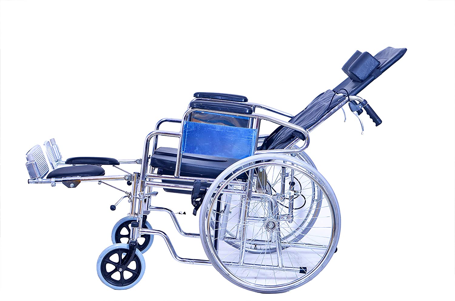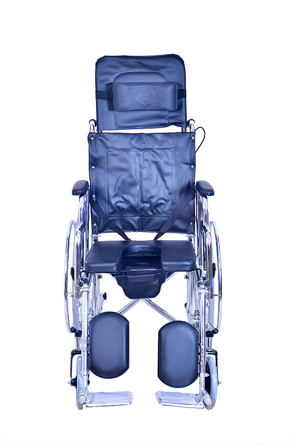 2.Retroverted high backrest, Seat with U Shape commode, Chrome-Steel frame