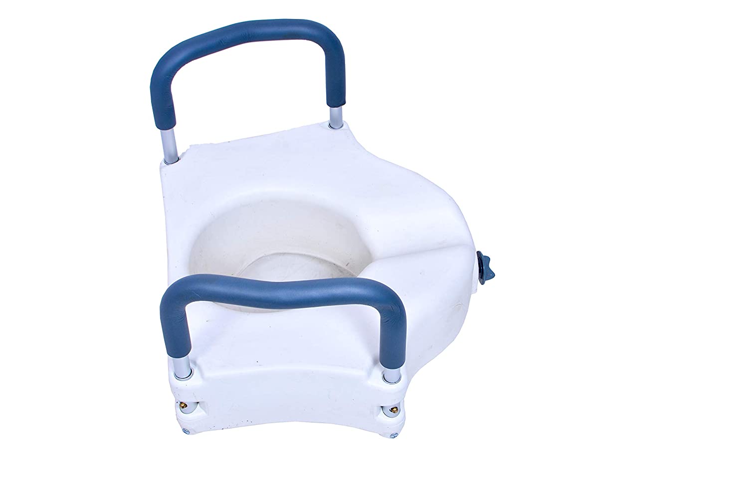 The toilet Cammod raiser with handle is designed for individuals with difficulty lowering down or raising from a toilet seat. It is an ideal solution for those with back problems or those who are postoperative back/hip/knee surgery.