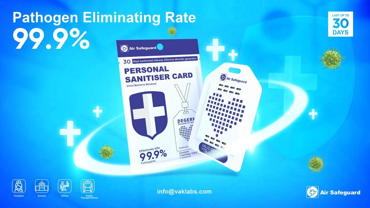 Personal Air Sanitizer Card. Easy To Use by adult and kids, you can use in any area it helps to air sanitized 1 cubic Meter area around you. Valid for 3o days after opening the packaging.