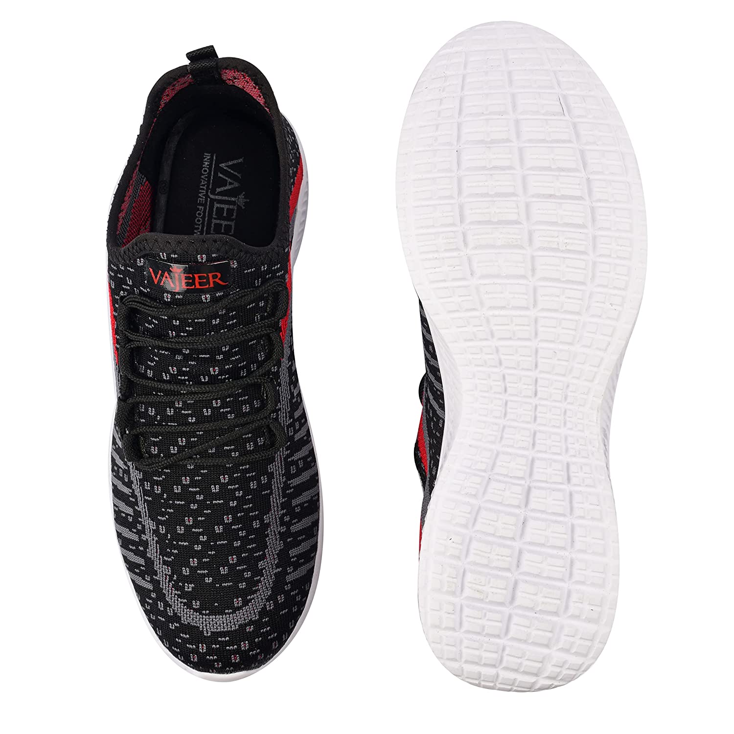 VAJEER is a leading manufacturer company for shoes . Vajeer offers performance and sport-inspired lifestyle products in categories such as running, Training and Fitness. Using high technology and design innovation, Vajeer continually creates what is aspired and not just what is necessary. All Vajeer products are meant to deliver high performance, durability and great comfort. This Vajeer sports Running shoe for men is extremely stylish It has eva bounce back sole which gives extreme comfort during walking, jogging, running and in extreme playing conditions. With their high bounce technology the shoes are meant to last longer and give comfortable wear throughout the day. It is machine washable , bouncy and cushioned . No wrinkles , No odour and Abrasion-resistant sole.Sole: Ethylene Vinyl Acetate | Closure: Lace-Up Shoe Width: Medium Shoe Width: Regular | Toe Style: CLOSE TOE |Occasion: CASUAL | Outer Material : Flynet Upper | Sole Material : EVA | Care Instructions : Allow your pair of shoes to air and de-odorize at regular basis; use shoe bags to prevent any stains or mildew; dust any dry dirt from the surface using a clean cloth; do not use polish or shiner