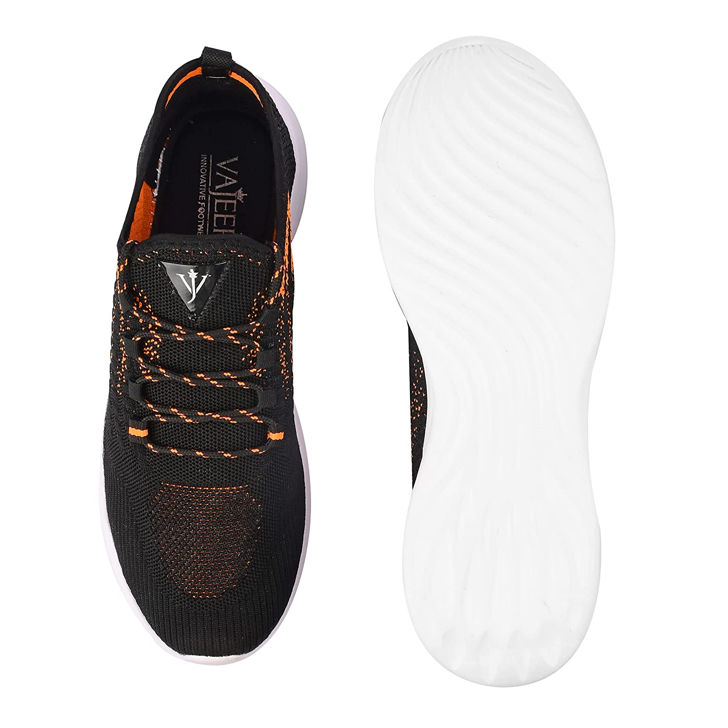 1.Sole: Ethylene Vinyl Acetate 2.Closure: Lace-Up 2.Shoe Width: Medium 2.Shoe Width: Regular 2.Toe Style: CLOSE TOE 2.occasion: CASUAL 2.Outer Material : Flynet Upper | Sole Material : EVA 2.Care Instructions : Allow your pair of shoes to air and de-odorize at regular basis; use shoe bags to prevent any stains or mildew; dust any dry dirt from the surface using a clean cloth; do not use polish or shiner VAJEER is a leading manufacturer company for shoes . Vajeer offers performance and sport-inspired lifestyle products in categories such as running, Training and Fitness. Using high technology and design innovation, Vajeer continually creates what is aspired and not just what is necessary. All Vajeer products are meant to deliver high performance, durability and great comfort. This Vajeer sports Running shoe for men is extremely stylish It has eva bounce back sole which gives extreme comfort during walking, jogging, running and in extreme playing conditions. With their high bounce technology the shoes are meant to last longer and give comfortable wear throughout the day. It is machine washable , bouncy and cushioned . No wrinkles , No odour and Abrasion-resistant sole.Sole: Ethylene Vinyl Acetate | Closure: Lace-Up Shoe Width: Medium Shoe Width: Regular | Toe Style: CLOSE TOE |Occasion: CASUAL | Outer Material : Flynet Upper | Sole Material : EVA | Care Instructions : Allow your pair of shoes to air and de-odorize at regular basis; use shoe bags to prevent any stains or mildew; dust any dry dirt from the surface using a clean cloth; do not use polish or shiner