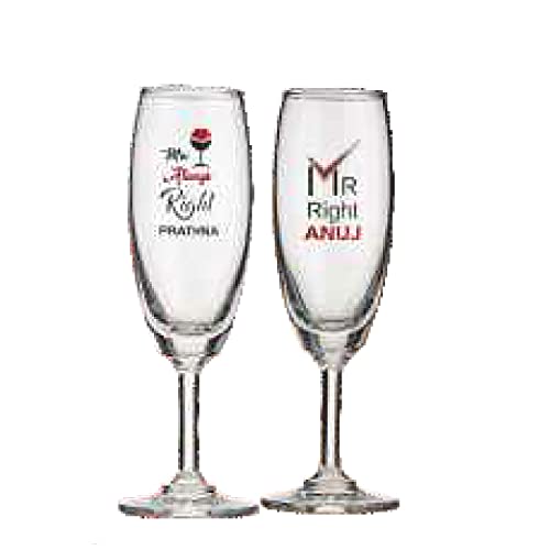 These are a set of two personalised engraved champagne glasses, engraved by Print My Emotion. Initials and date will be engraved on the glasses as per the customization details given by the user. Its a good gift set options for couples getting married, or a gift for anniversary or wedding.